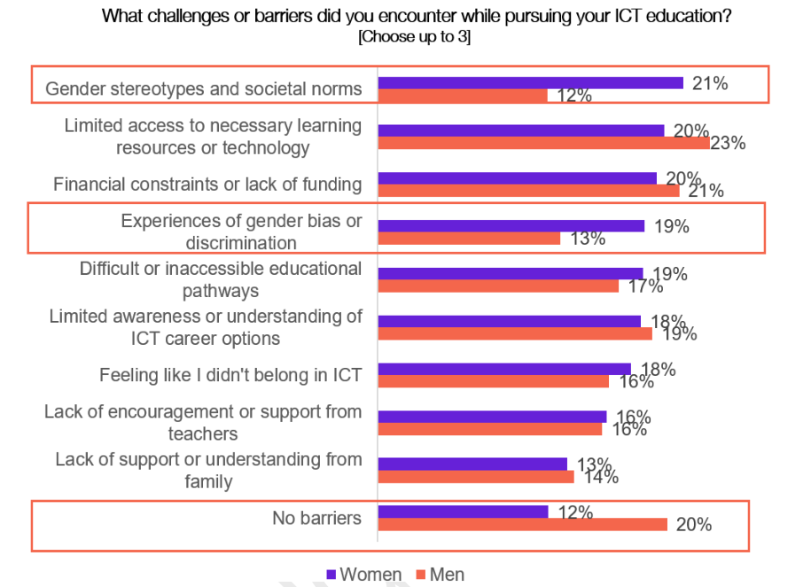These findings are reinforced by insights from the 2025 Women in Digital Survey (4,454 respondents across the EU27), where: 66% of women report societal gender norms as a persistent barrier, 47% feel they must exert more effort than men to prove equal competence, career breaks significantly affect women’s long-term progression.